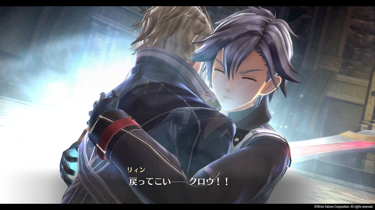 • They head to the shrine where Crow is, and Crow challenges Rean once again, making it sound like it's a test of strength or something. In truth, he's planning to die via Divine Knight Smashy Highlander Vore Time so Rean can have his power. When they realize what's happening and Crow starts to fade, Rean rejects the idea so hard that he ties their life-forces together to save Crow. Via hugging. It's real gay. Afterwards, Crow joins the party for good.